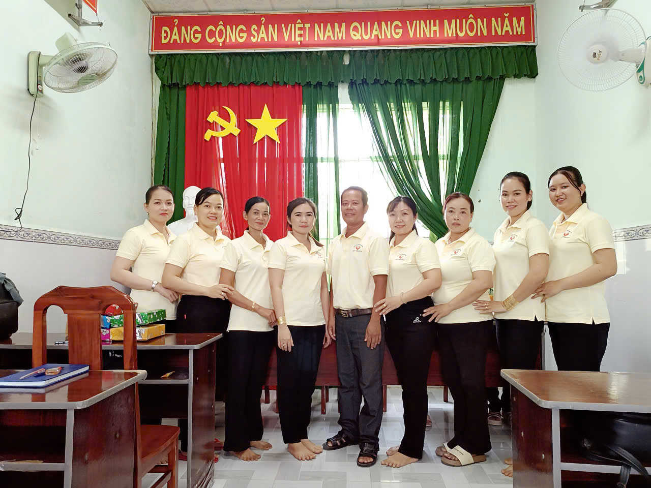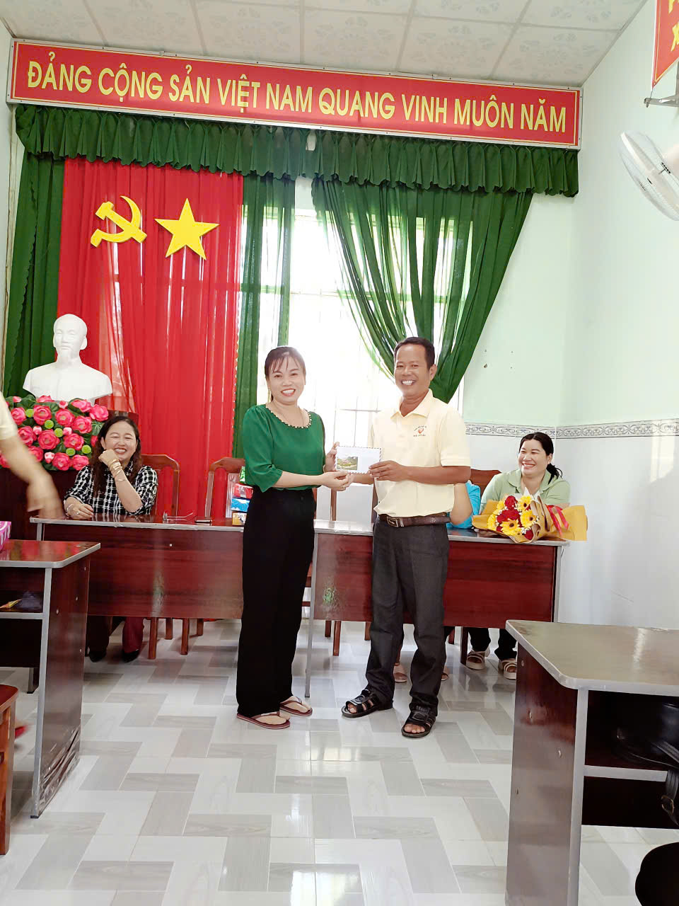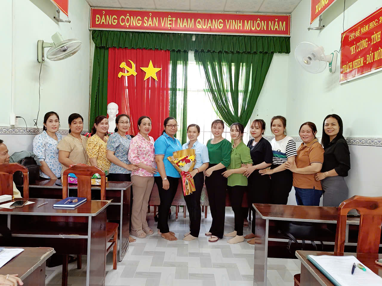 Tham dự có đồng chí Nguyễn Thị Thuỳ Linh - Phó bí thư chi bộ, đồng chí Phạm Thị Kim Em - Phó hiệu trưởng trường, đồng chí Lâm Thị Tuyết Hoa - Hiệu trưởng trường mầm non Thuận Hưng cùng tập thể giáo viên nhân viên của trường.