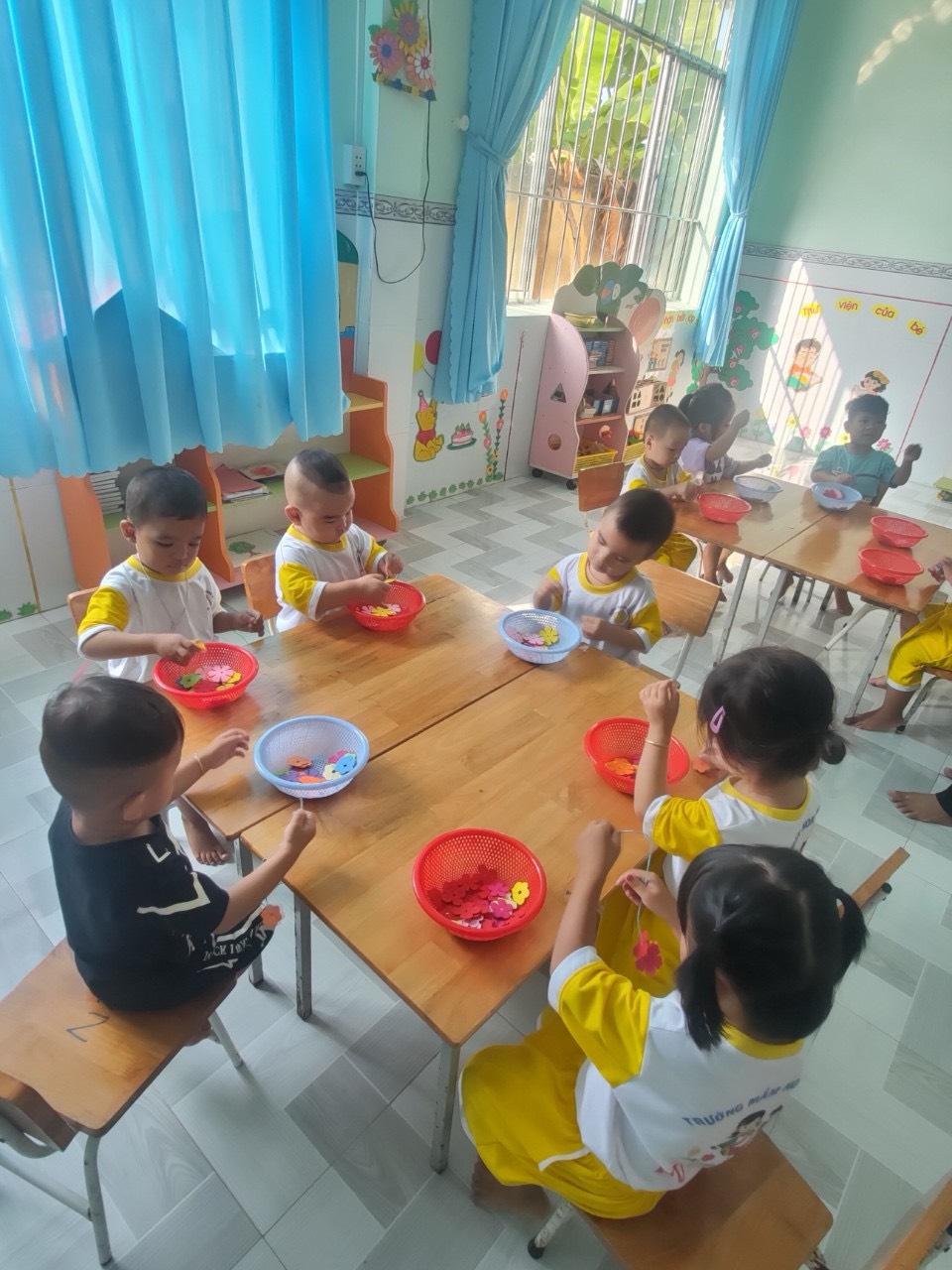 với hoạt động: Xâu vòng hoa tặng mẹ